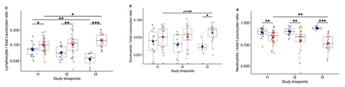 Профиль воспаления был оценен на основе мультиплексного иммуно-анализа. Исследователи подсчитывали количество воспалительных клеток по образцам крови и иммунных белков по образцам плазмы крови.
